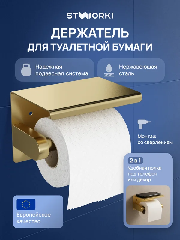 В нашем интернет магазине вы можете приобрести держатель для туалетной бумаги stworki хельсинки s33345gm с полкой для телефона, матовое золото оптом и в розницу по выгодным ценам.