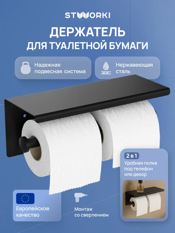 В нашем интернет магазине вы можете приобрести держатель для туалетной бумаги stworki хельсинки s33350bk с полкой для телефона, двойной, матовый черный оптом и в розницу по выгодным ценам.