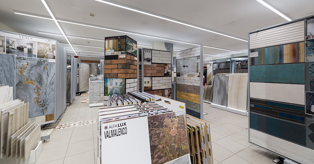 Наш шоу-рум зал крупноформатного керамогранита
