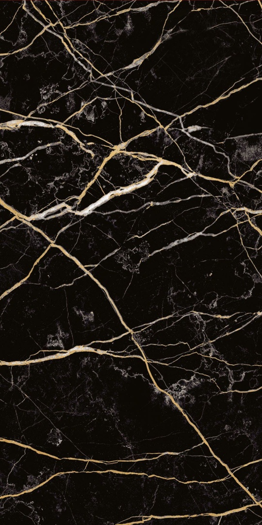 Глубокий чёрный фон с золотистыми и серебристыми прожилками воссоздаёт эстетику элитного мрамора