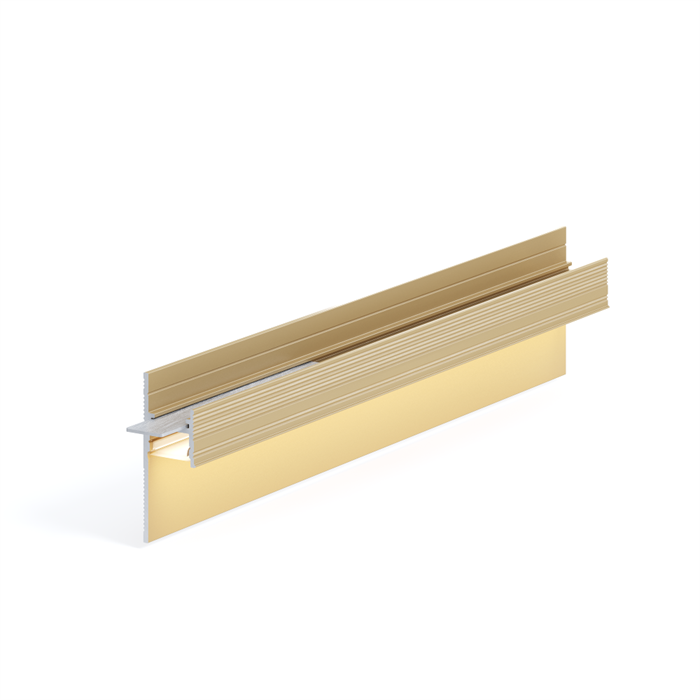 В нашем интернет магазине вы можете приобрести теневой плинтус laconistiq light 41 под подсветку светлое золото анод. 41,3х15х3000мм зазор 20мм оптом и в розницу по выгодным ценам.